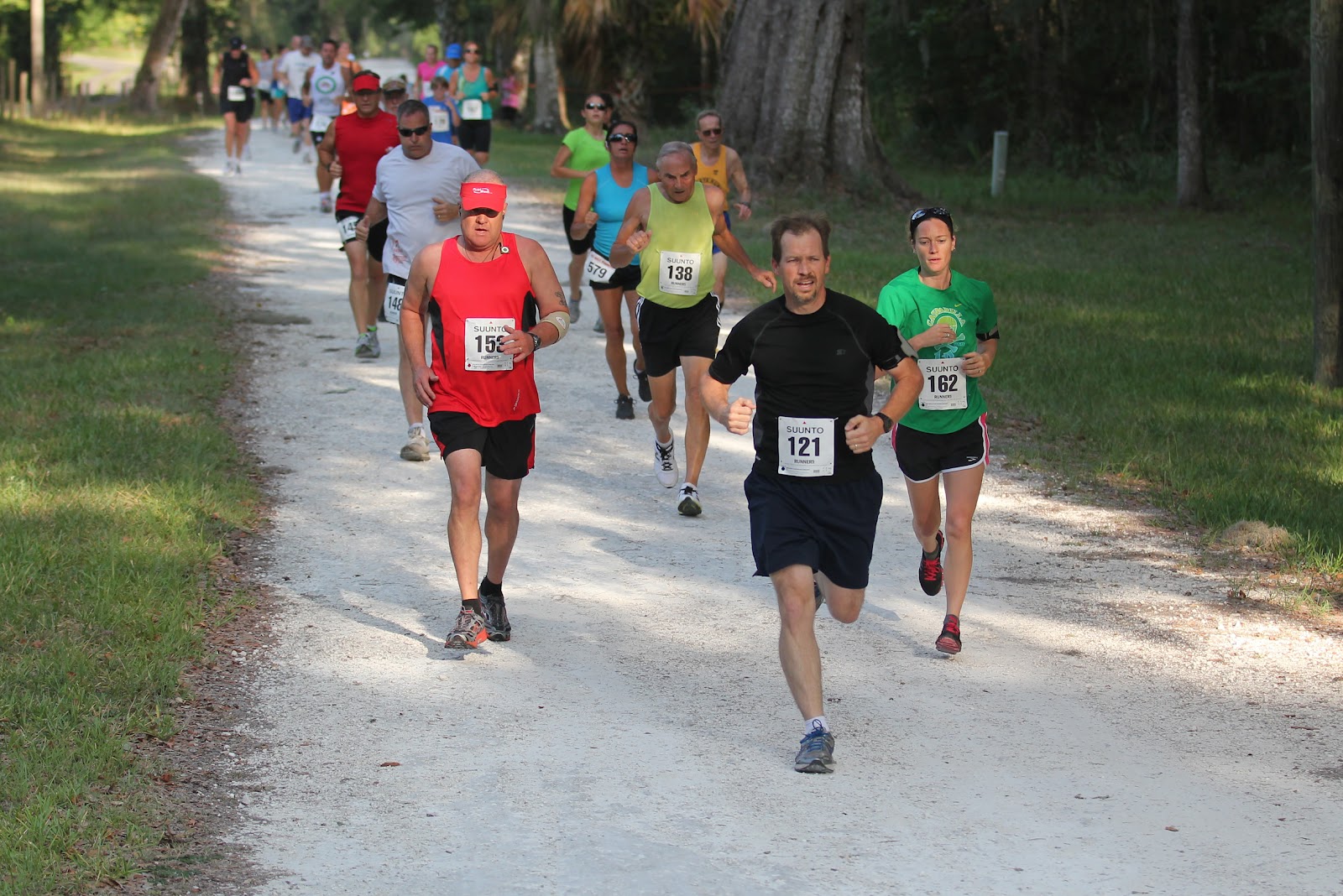 Second, I made a mistake by getting postitioned toward the back of the pack at the starting line. When the gun was fired, we took off. In less than 100 yards, we were on a dirt trail winding its way through the woods. The trail was probably no wider than 3-4 feet and so passing runners was not necessarily impossible … but it seemed a little reckless. This narrow trail lasted for about half a mile. I only passed a couple of folks in that time span.