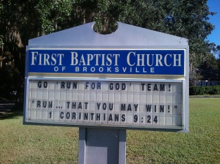 - Because I will be joined by a group of men and women from First Baptist Church that I have been able to coach and train for the past 11 weeks. We’ll all be wearing red ‘Run for God’ shirts.