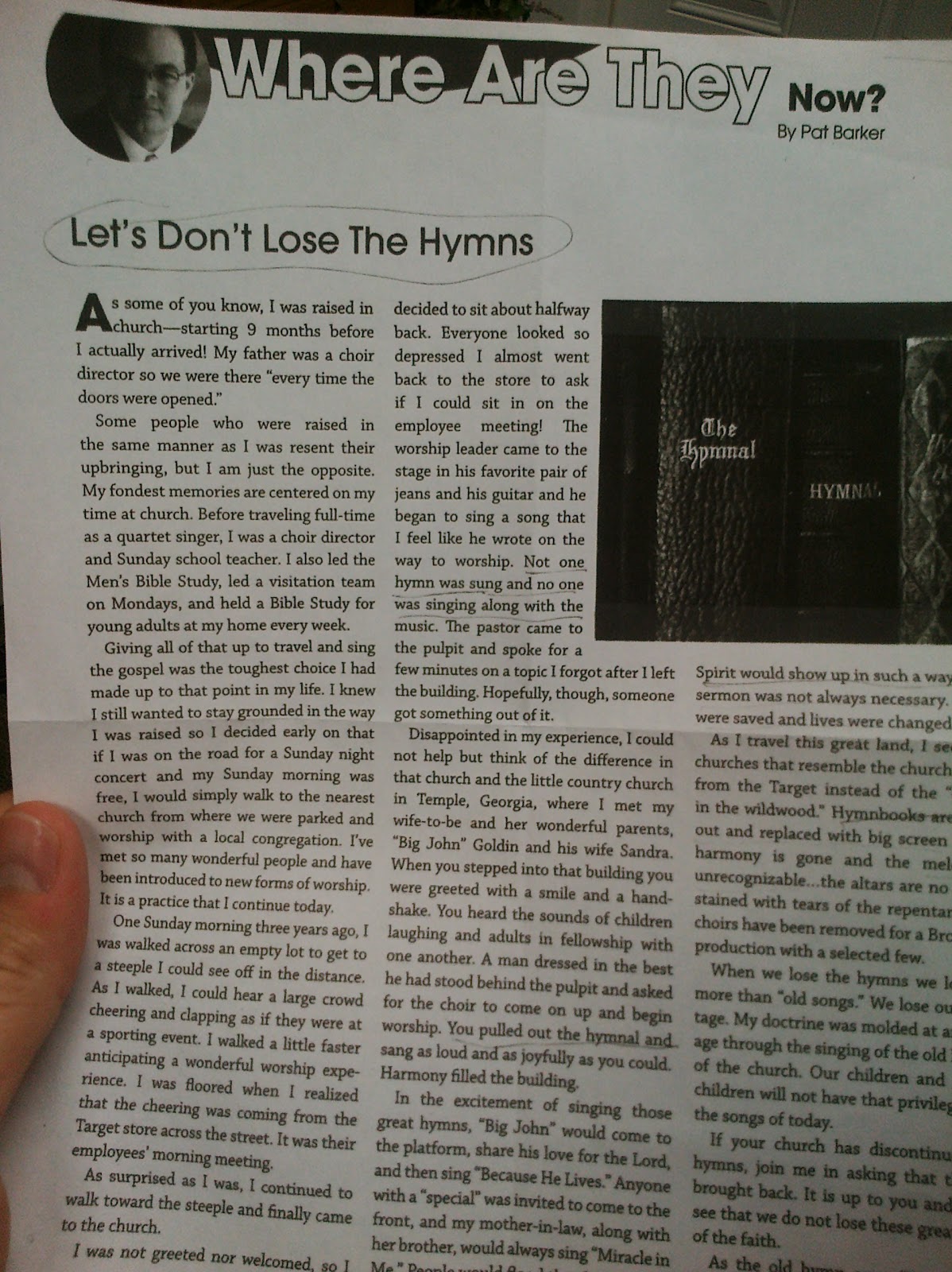 The stack of papers had been photocopied by a well-intentioned, unidentified church attender that morning. It was an article titled: “Let’s Don’t Lose the Hymns” by Pat Barker. I absolutely agreed with much of what Pat wrote but heartily disagreed with one of his conclusions. Here are just a few of my reflections on this issue.
