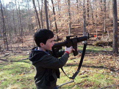 | Sean took his airsoft gun and the boys enjoyed some target practice! Here’s Joseph taking aim at an unsuspecting tree. |