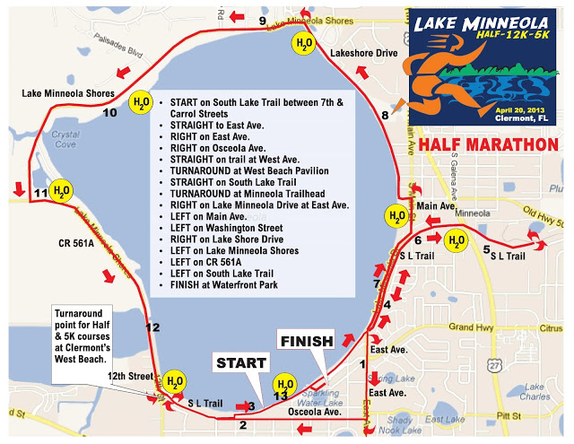 | Lake Minneola Half Marathon Route (April 20, 2013) |