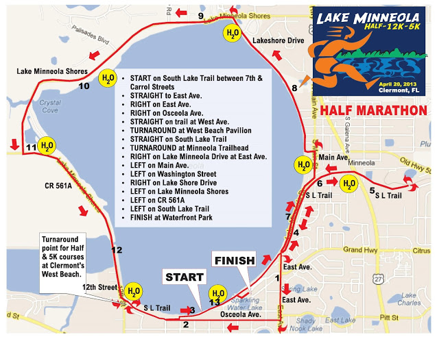 Here’s the map of the race course. Below this map is a video I took overlooking Lake Minneola. I took the video from the spot on the map just to the right of the word “Finish.”