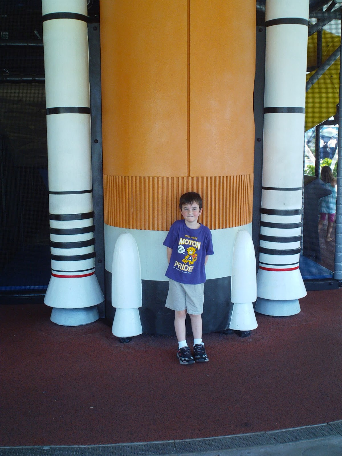 While we were there, we took some pictures of our boys near some Shuttle models. The picture to the right shows a 5 years old Joseph standing in front of a fiberglass model. It sure looked a lot like the Space Shuttle on the outside but everyone knew it wasn’t the real deal. There were no tiles on the underside of the glider. The ‘windows’ on the glider were obviously just decals. But, it looked enough like the Space Shuttle for Joseph to enjoy posing with it for a picture.