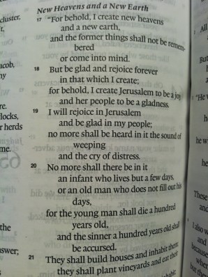 If you read Isaiah 65:17-19, you will read about the New Heavens and New Earth. I mentioned (as does the Apostle John in Revelation 21-22) that this is referring to our eternal home (“Heaven”). Yet, if you read the very next verse, Isaiah continues: