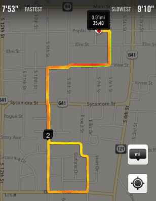 My plan didn’t work. The race began and I felt the urge to push it. I wasn’t going ‘all out’ but I was running much faster than I had planned. The hills on the first mile quickly took their toll. I noticed that I was gradually slowing down (and had to take a couple of 3-5 second walking breaks).