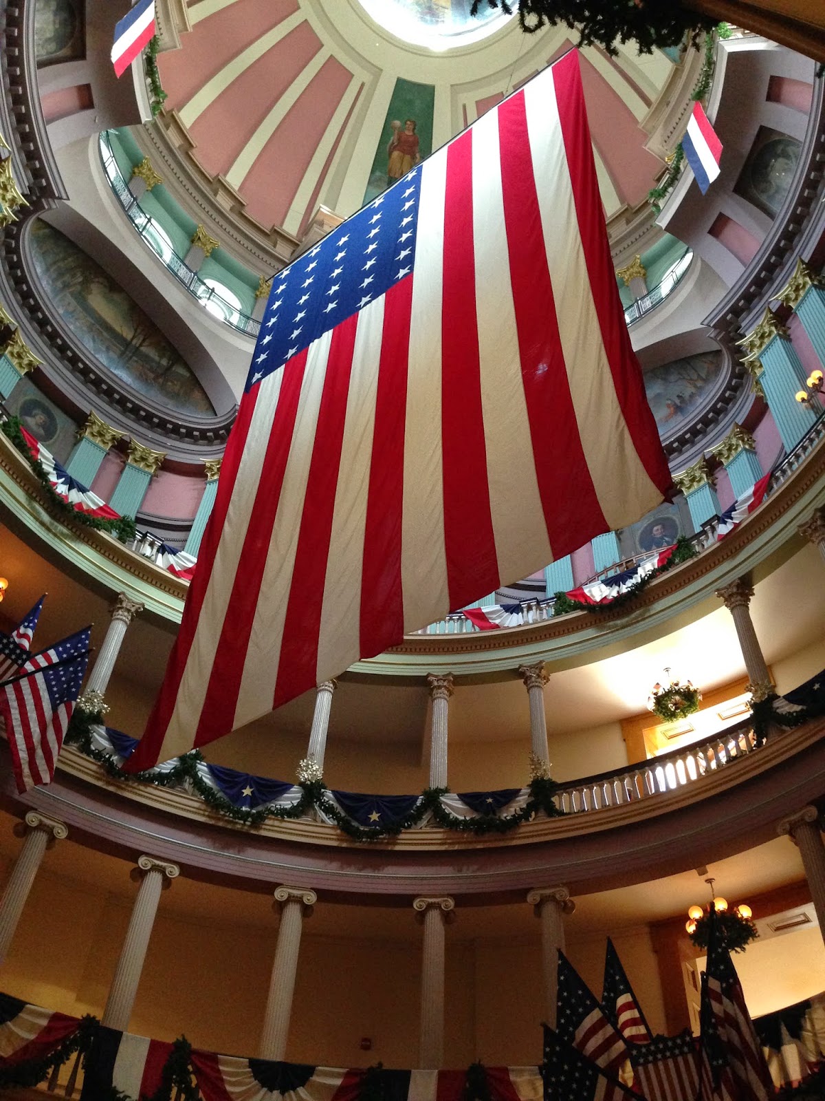 The inside of the courthouse was decked out in spectacular patriotic colors and American flags.