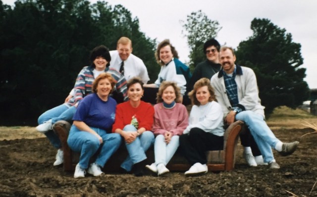 The next day, the singles church group headed back to Lexington, KY. On the way, they saw a couch on the side of the road and decided to take a crazy picture on it. Kim is in the red sweater.