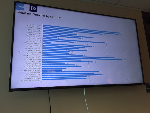 | NAMB has a “War Room” on the 5th floor. This room has names, churches, church plants, and other information that surround the individuals who enter this room with the purpose of interceding. |