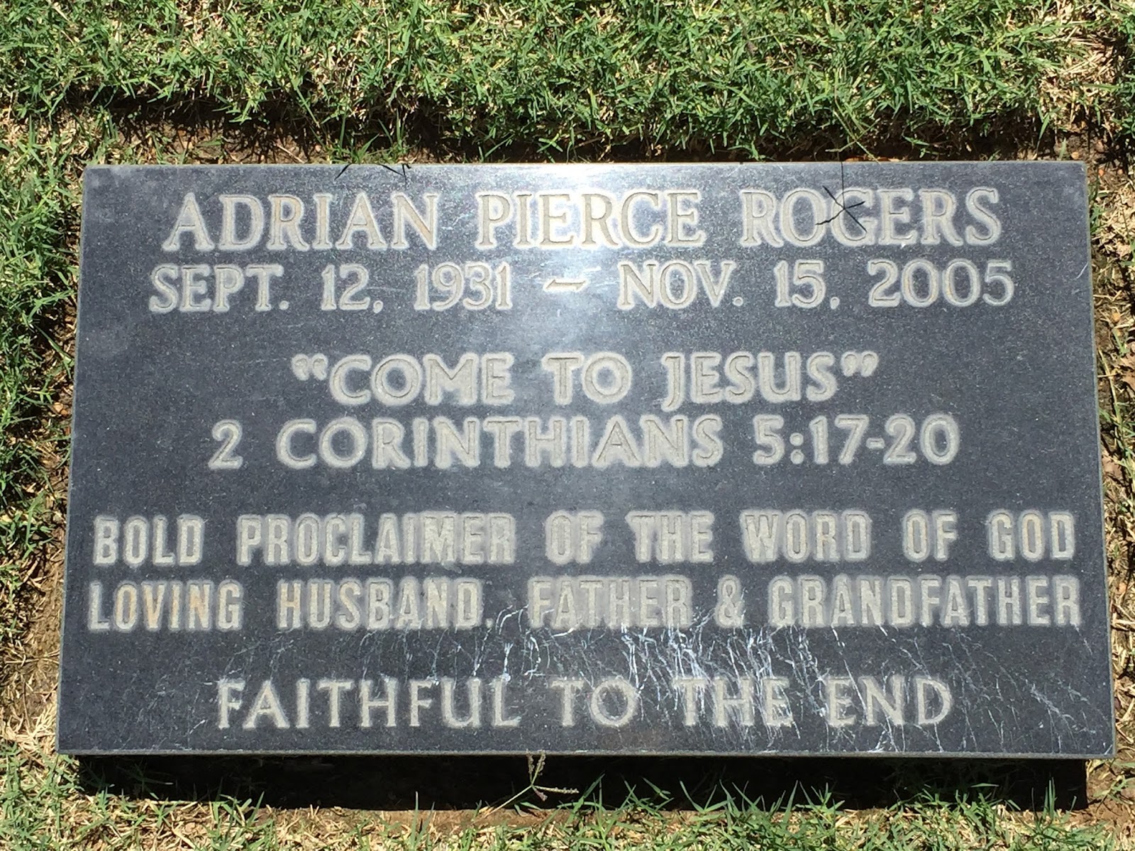 | We visited Adrian Rogers’ grave today. His body is laid to rest beside their young son who died before he was 3 months old. |