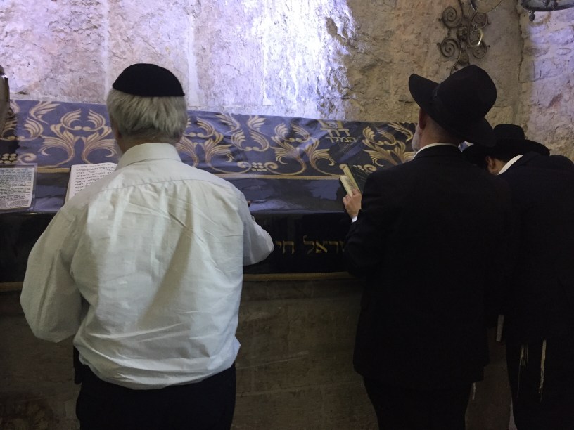 We visited what is believed to be King David’s Tomb today in the Old City section of Jerusalem. It is not certain that his remains (or the dust of his remains) is actually what is in the Tomb. But many of the people here believe it is.