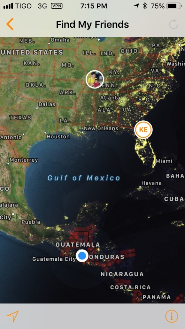 As we gathered for a church service last night, I snapped a picture of my family’s whereabouts. Zach is still back in Murray while Kim and Joseph have made it to Florida. I can’t wait until all of the circles are united again!