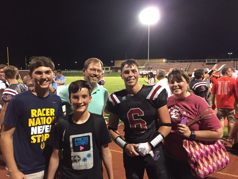 I just had to include this last picture! Sean is taller than me now but it certainly wasn’t that way when Sean started playing football. Sean’s love for football began in 2009 when he first started playing with the Hernando Youth League in Brooksville, Florida. This last picture was taken at Citrus High School in Inverness, Florida before one of his games that first year.