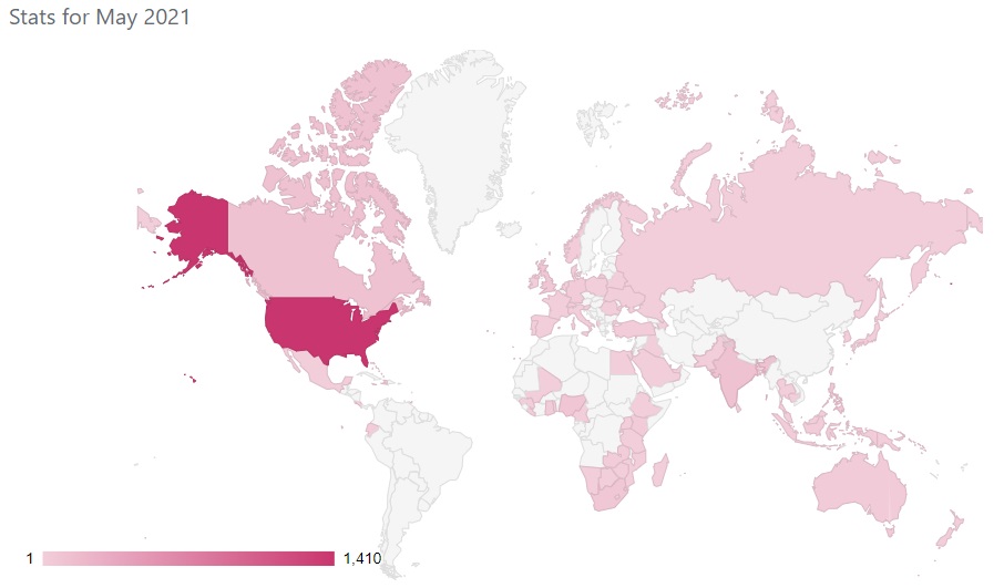 Countries from which viewers checked out at least one article on my website during this month of May 2021.