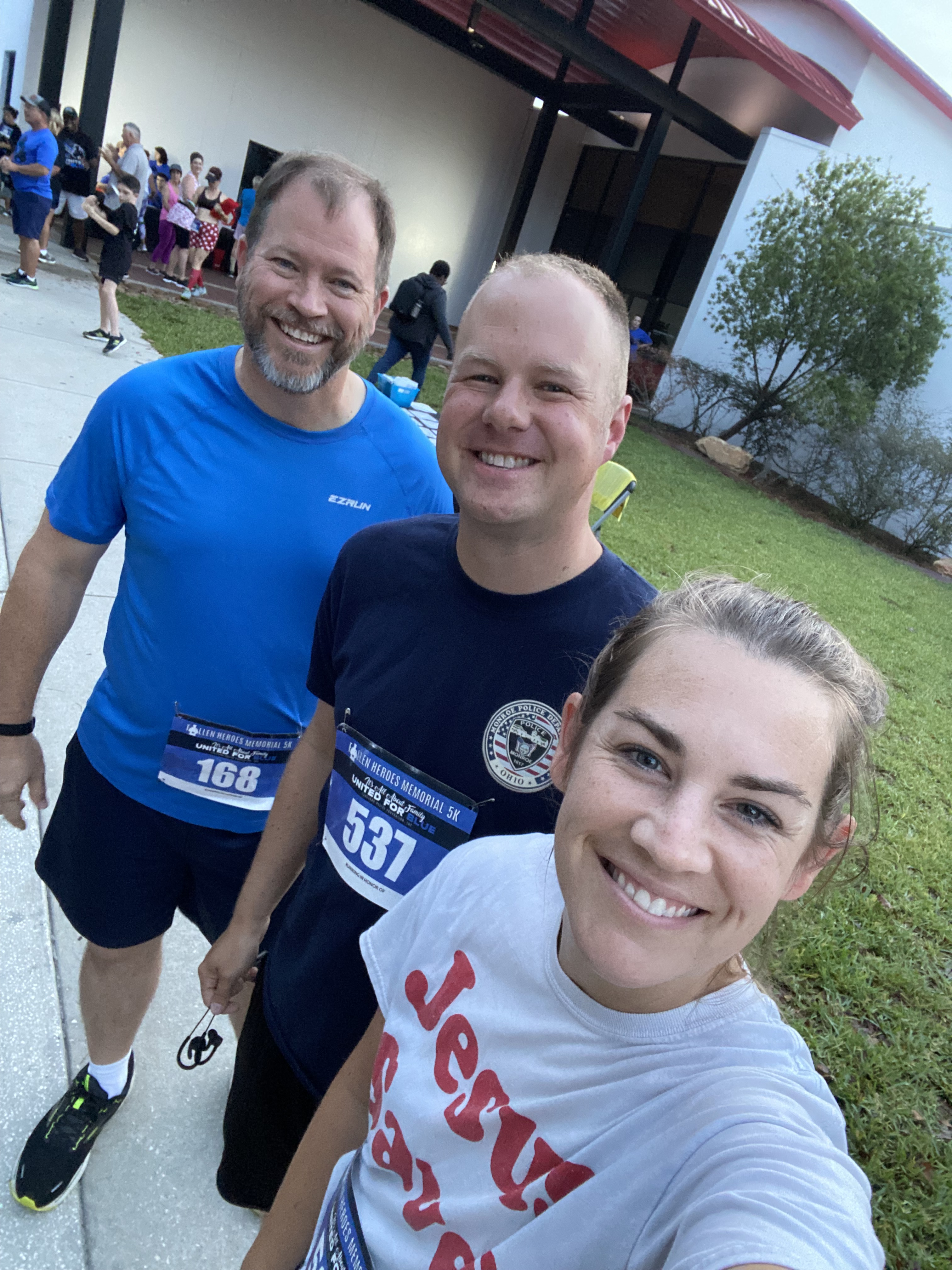 I also played a small part in getting Drew White into his new running habit. He had a desire to get back into the sport and I simply encouraged him and gave a few instructions. So his first-ever 5K race was today. It was apropos that he was able to run in a Police Memorial race. He is a former cop and he has a deep respect for the men and women who serve their communities as police officers.