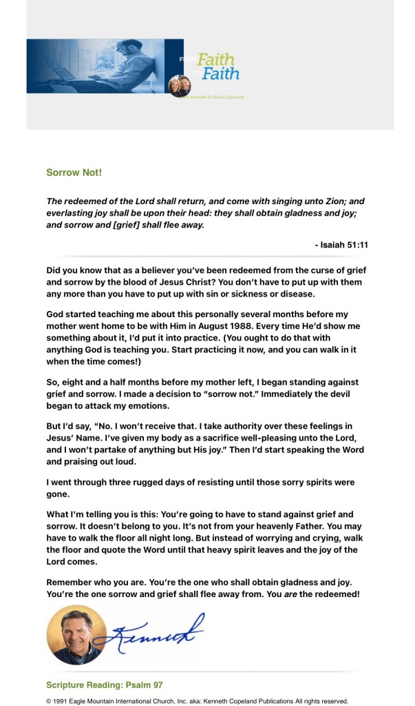 I received an e-mail from someone recently. They attached the following article and asked my thoughts on what Kenneth Copeland said in it.