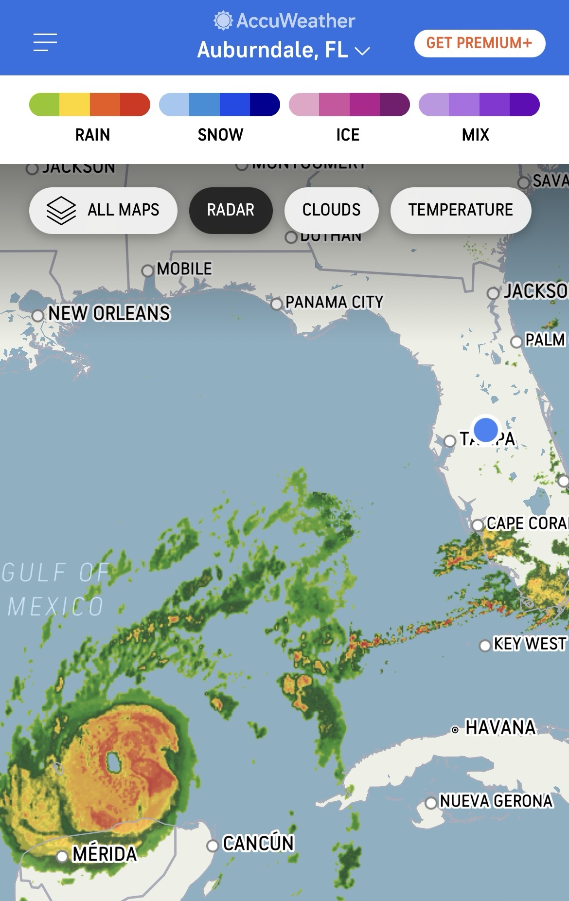 First, the storm. Here is a radar picture of Milton as it churns in the Gulf.