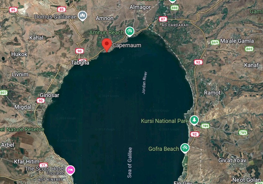 First, I want to show you a map of where Capernaum is located in relationship to the Sea of Galilee in northern Israel.